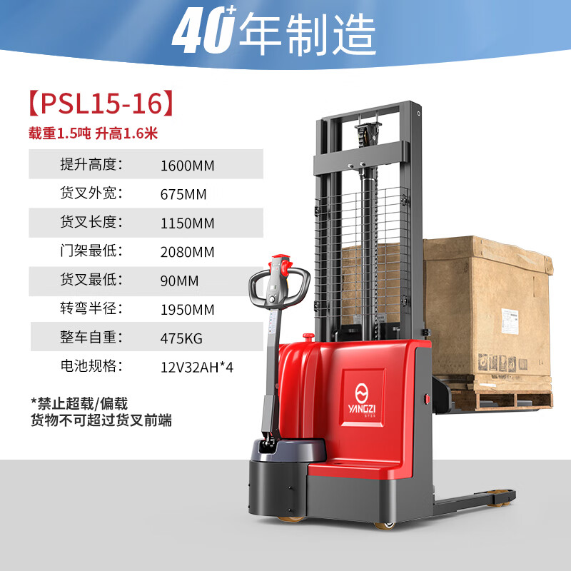 揚子電動堆高車升降叉車PSL1516-1.5噸升高1.6米