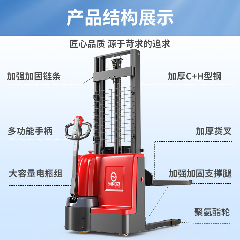 揚子電動堆高車升降叉車PSL1516-1.5噸升高1.6米,加厚C+H型鋼門架,優質加厚寶鋼,穩固承重強
